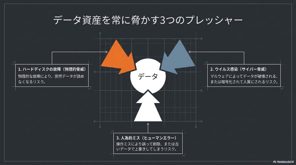 データが消えるのは、決して「運が悪い」からだけではありません。私の教え子たちも直面してきた、日常に潜む3つのリスクを自分事として捉えてみてください。