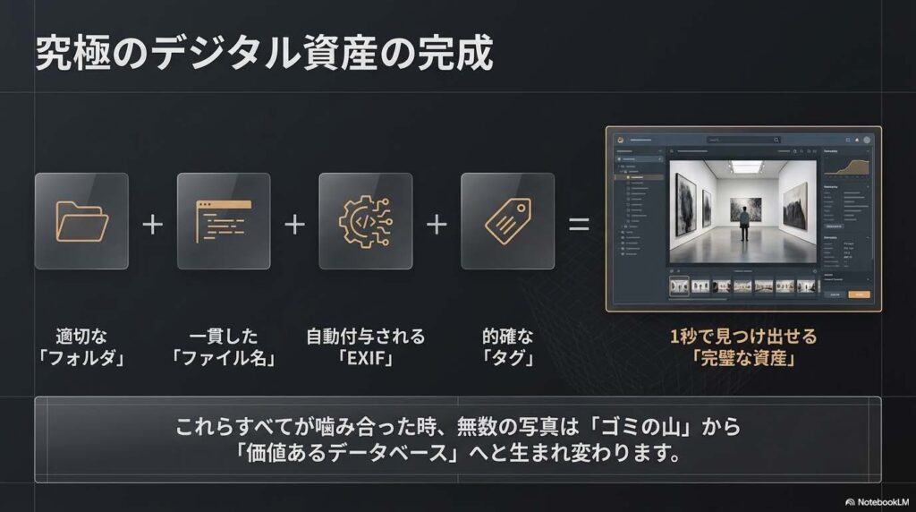 高度な写真管理の真の目的は、単にストレージを整理整頓することではありません。それは、データとして死蔵されていた瞬間を、いつでも呼び戻せる「生きた資産」へと変えることです。