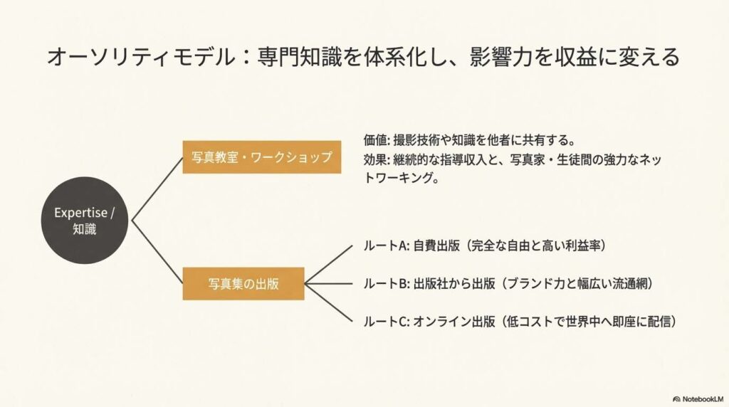 - 写真教室・ワークショップ: 技術や視点を教えることで、教える側としての権威性を確立し、新たなネットワークを構築できます。